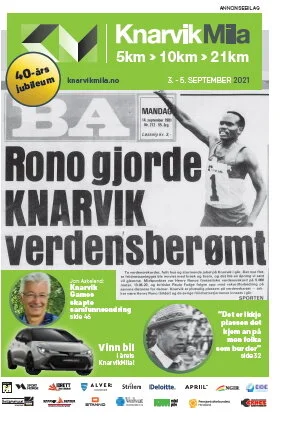 Knarvikmila Avisa 2021 er nå ute. Den vil bli distribuert på papir i deler av Bergen, Osterøy og Nordhordland i veke 34. Føl med i postkassen. I Avisa kan du lese alt om Knarvikmila 2021. Hovudvekta i artiklane er om 40-års jubileumet for Knarvik Games og Knarvikmila.